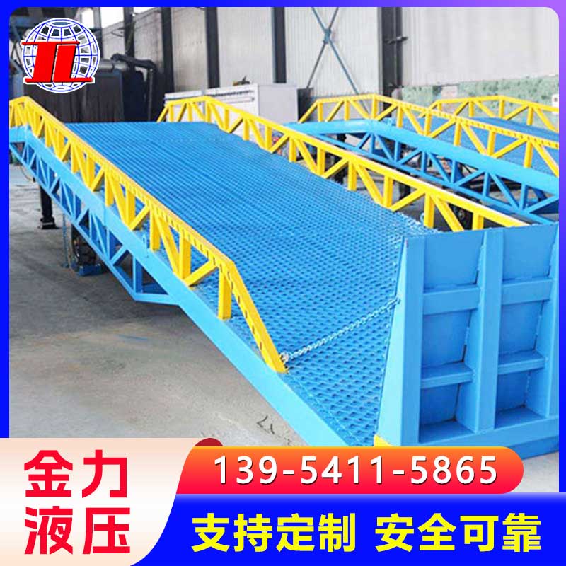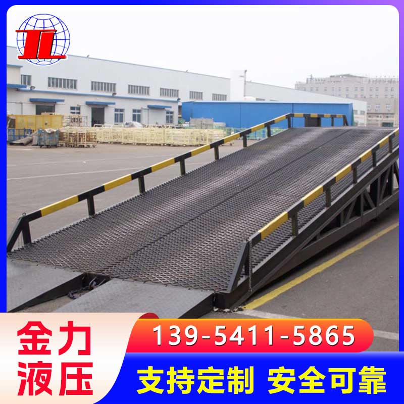 移动登车桥是与叉车配合使用的货物装卸辅助设备,可根据货车车厢不同高度调节,实现货物的快速装卸。